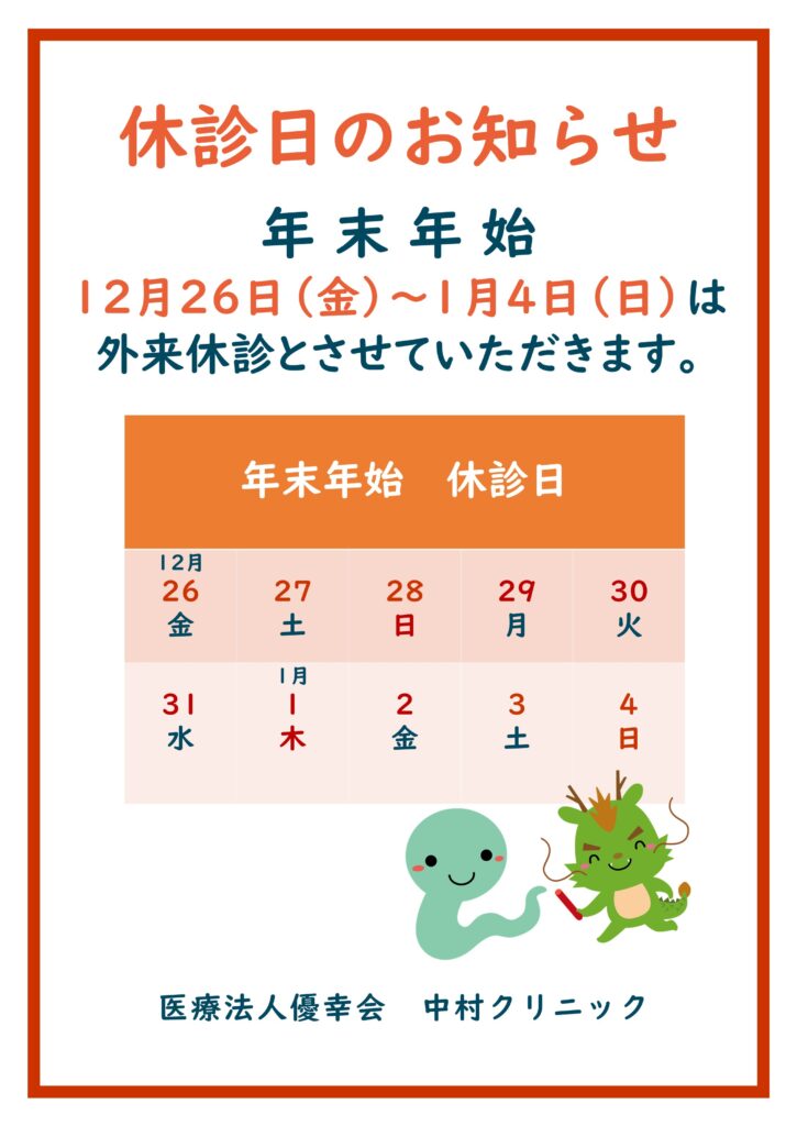 年末年始外来休診日のお知らせ